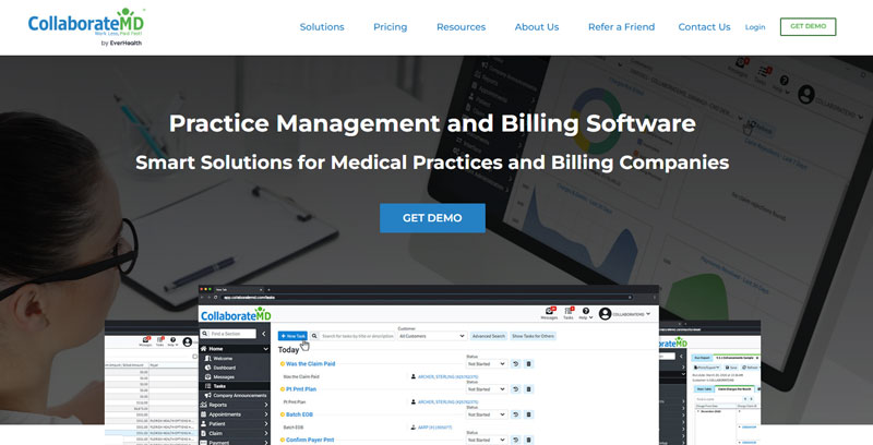 CollaborateMD is a cloud-based practice management and medical billing system that avoids complicated workflows for the front office and simplifies the billing process for the back office. They offer various features including easy appointment scheduling, efficient claim management, and detailed analytics and reporting.